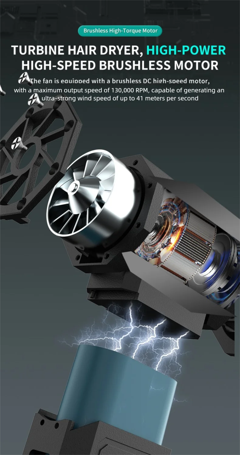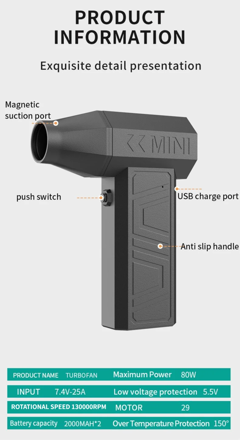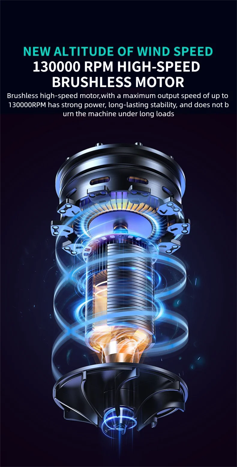 The Violent Fan boasts an impressive 41m/s wind speed and 130,000 RPM, delivering a powerful airflow that effectively removes dust and debris. Its brushless motor ensures high efficiency and long-lasting performance, making it suitable for various cleaning tasks.